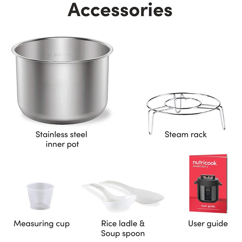 Smart Pot 2 چیزی فراتر از یک زودپز برقی است. این ابرقهرمان آشپزخانه شما است که آشپزی را آسان تر و سریعتر از همیشه می کند. این جای چندین وسیله آشپزخانه با عملکردهای مختلف از جمله پخت و پز تحت فشار ، تفت دهنده ، آرام پز ، پخت و پز برنج ، بخارپز ، تهیه ماست و گرم شدن غذا و .... است. استفاده از آن بسیار ساده است و فضای زیادی را روی میز آشپزخانه شما ذخیره می کند. زودپز هوشمند نوتریکوک دارای ویژگی های جدیدی است که برای سهولت شما طراحی شده اند. صفحه کنترل ساده با نمایشگر LED روشن و نشانگر وضعیت پخت و پز به آشپزهای خانگی اجازه می دهد تا خودشان روی تجربه آشپزی تمرکز کنند. همچنین این زودپز از برنامه آشپزی هوشمند Sous Vide برخوردار است